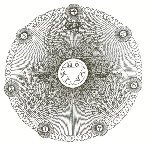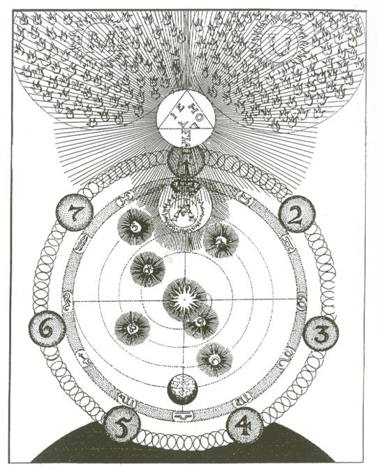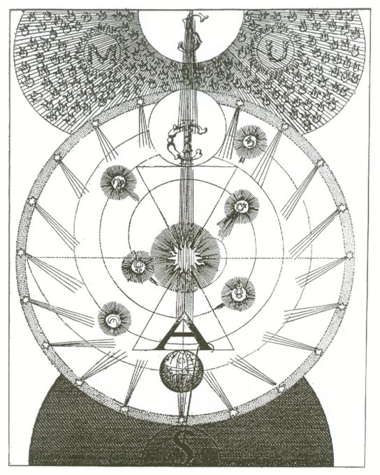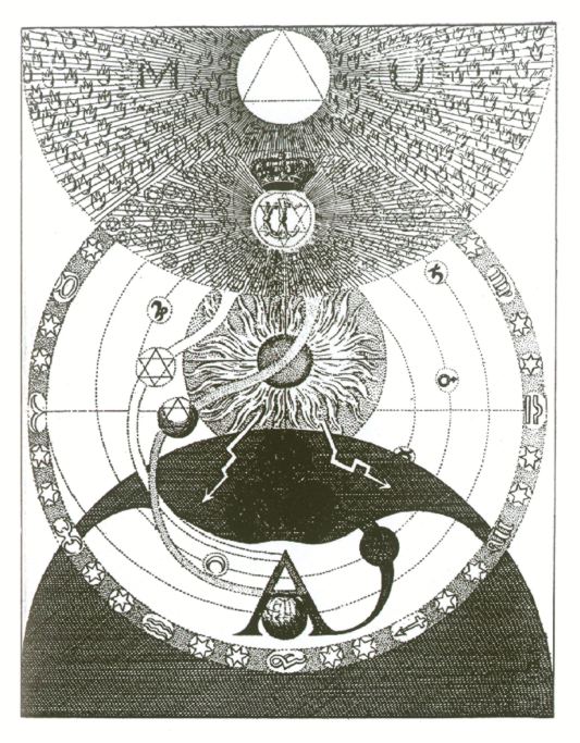 Now, note in this ancient illustration, taken from the "Hieroglyphica Sacra" 1764, by Dionysius Andreas Freher, who was a follower of Jakob Böhme [both Christian mystics], this is also in the Roob book; the 'A' has been erased from the top sphere.