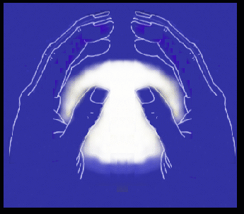 - Now, focus intensly upon your hands, especially your palms. Feel the area you pressed in with your thumb.