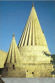 "...seven towers - the Towers of Satan [Ziarahs] -six of them trapezoidal in form, and one, the "center" on Mount Lalesh, shaped like a sharp, fluted point."